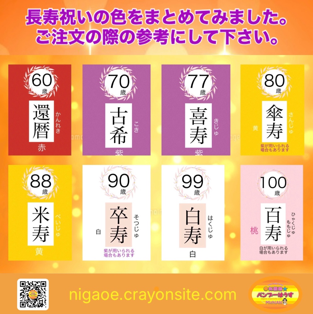 • 60歳 還暦 赤 70歳 古希 紫 77歳 喜寿 紫